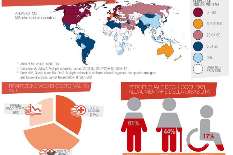 «Secondo gli ultimi rilevamenti disponibili – aggiunge Ciolini – i casi di Sclerosi Multipla in Italia sono circa 70mila e in Toscana, grazie un recente algoritmo messo a punto dall’ARS ha consentito di individuare 6.683 persone affette dalla patologia al 1° gennaio 2012, per un’incidenza pari a 182 casi ogni 100mila abitanti, mentre a livello nazionale si parla di 110 casi su 100mila. Sono numeri importanti, che riguardano la qualità della vita di chi è affetto da SM ma che hanno ripercussione sui costi sociali ed economici, diretti e indiretti, del sistema sanitario».